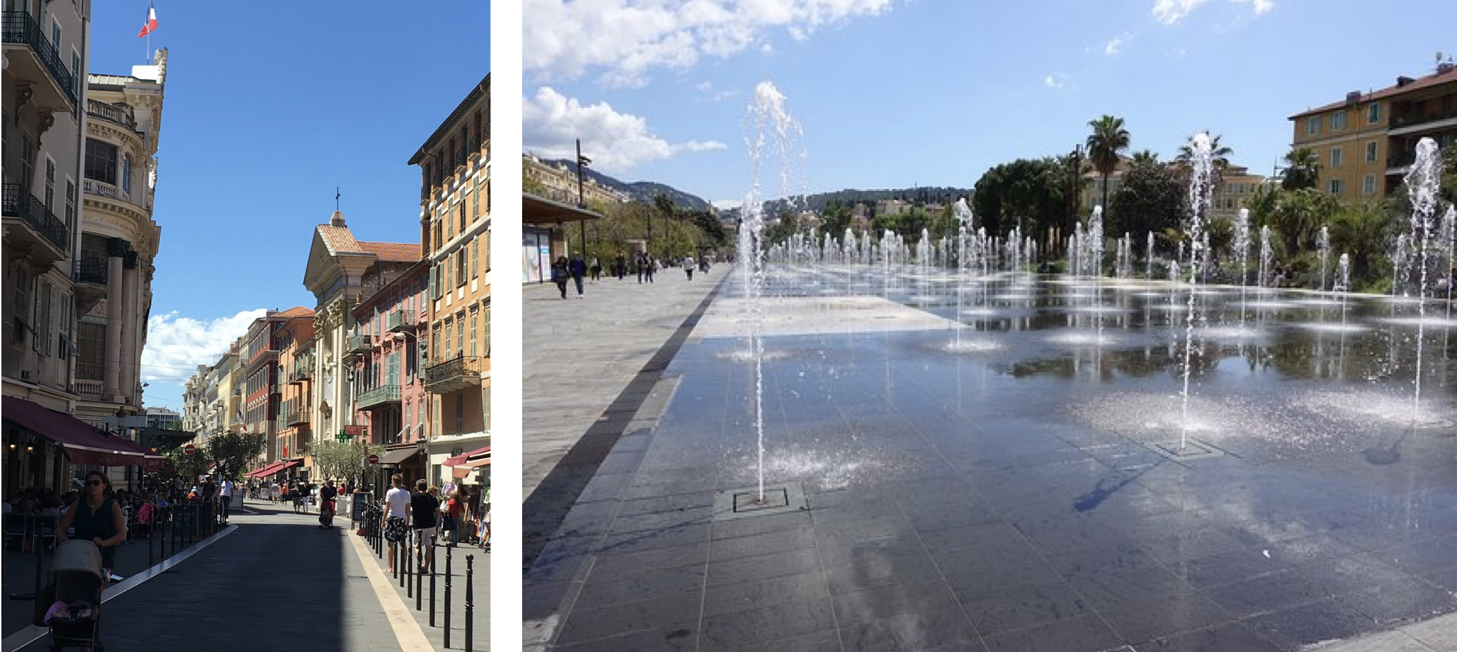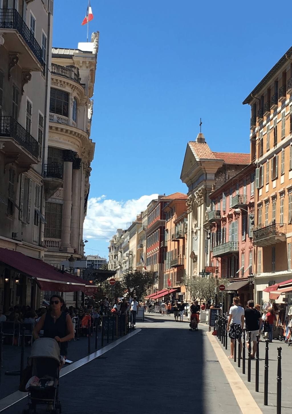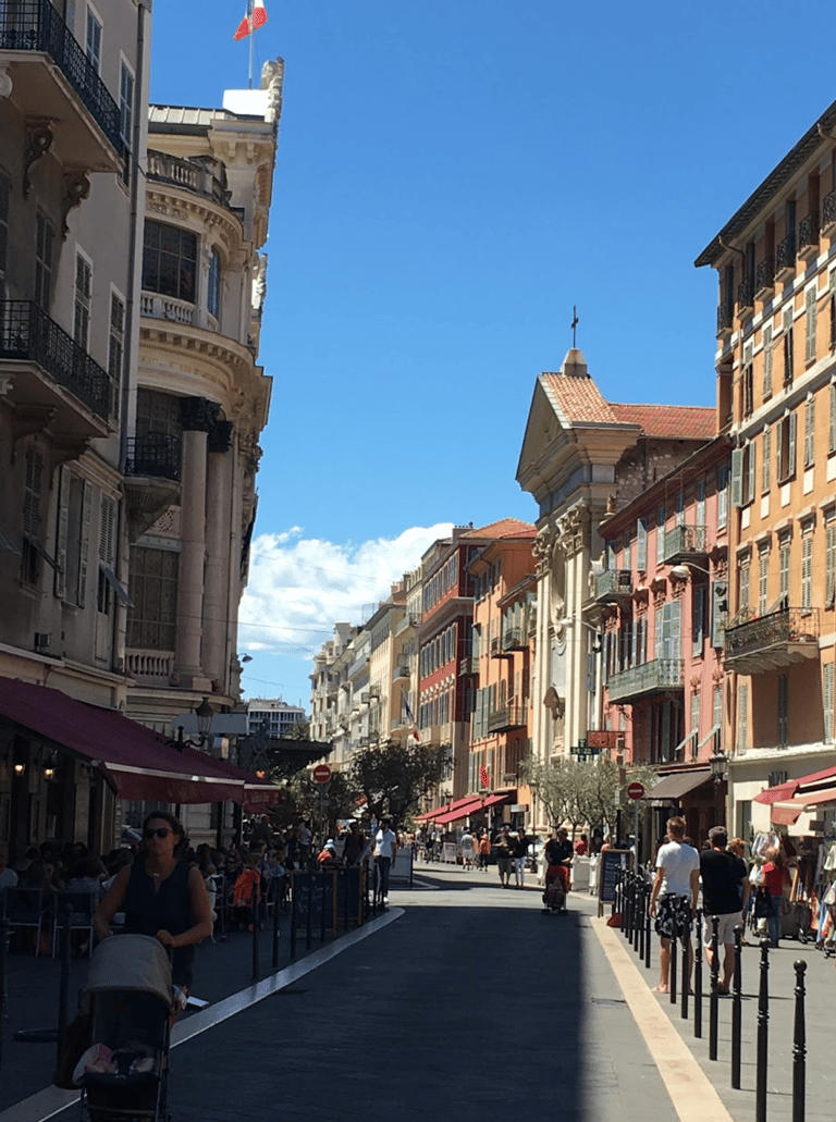 You can start either near the Nice airport or the Quai des États-Unis (the beachfront promenade which extends from the Promenade des Anglais), and walk towards the Old Town observing the vibrant city life.