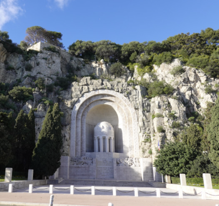 This imposing, 32-meter high structure was built between 1924 and 1928 to honor the locals who died in World War I and is carved into the rock at the end of Quai Rauba Capeau.