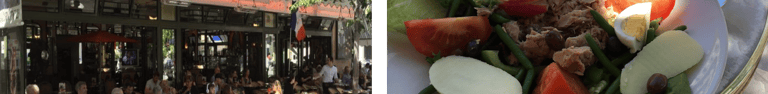 Another must-do is to have a Salade Niçoise - a dish born and made famous in Nice. Enjoy people-watching while sitting at a local sidewalk cafe - très francais! I recommend “Le Grand Café de Lyon” on Boulevard Jean Médecin. This is the quintessential french cafe scene, complete with bistro tables, wicker chairs, (and ash trays) under an awning.